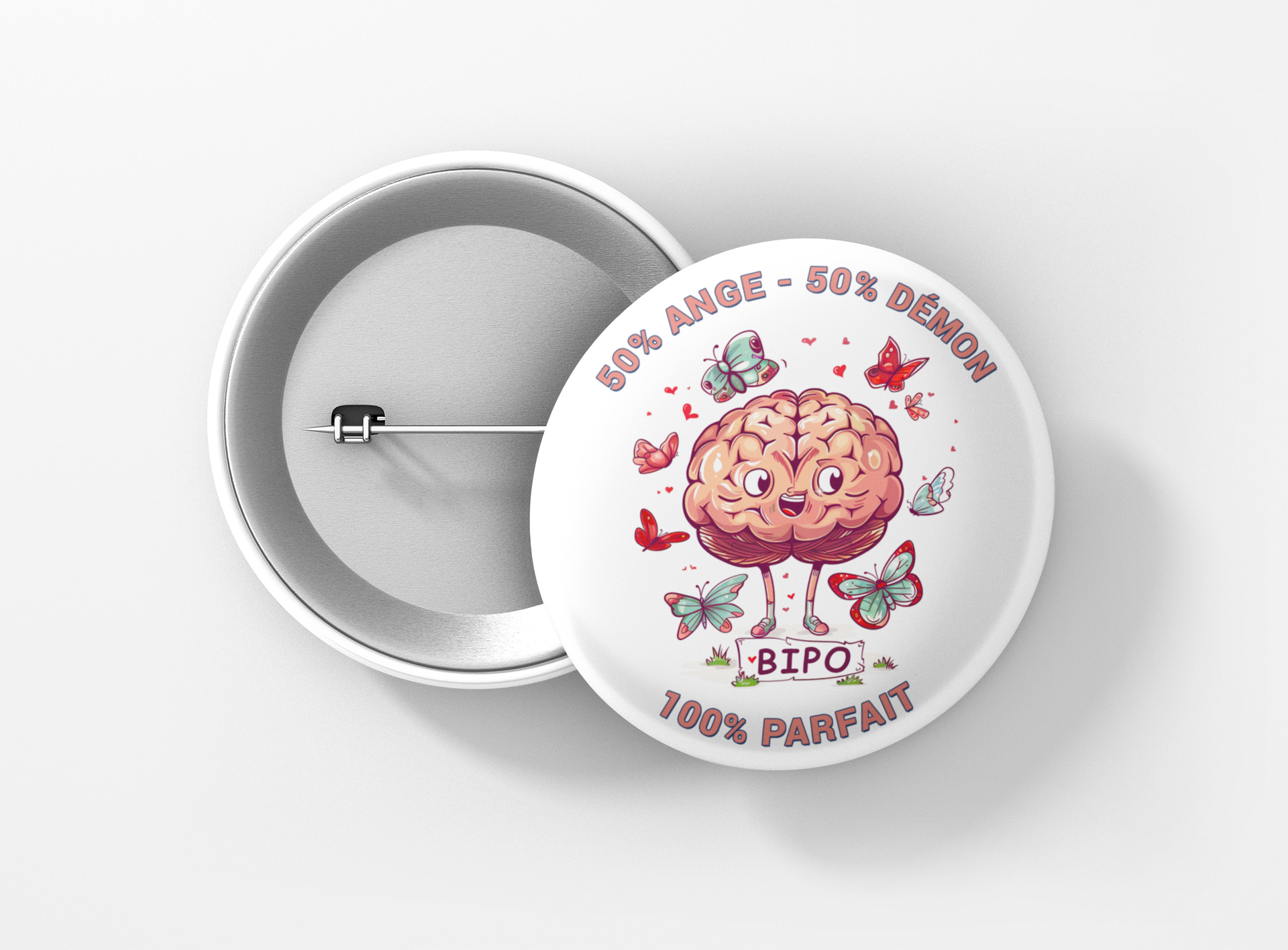 - Fixation : Épingle sécurisée, idéale pour vêtements, sacs ou autres accessoires.