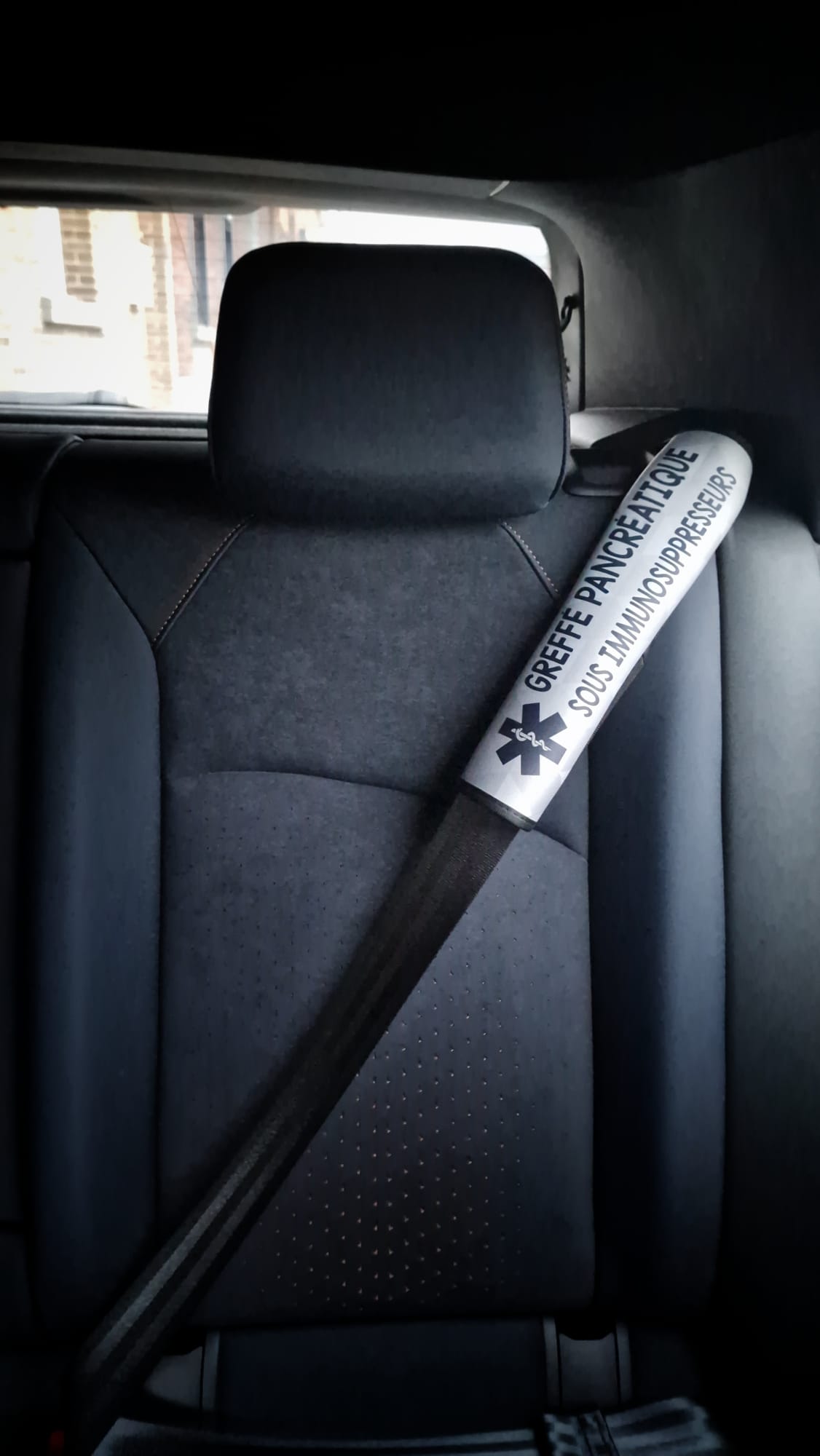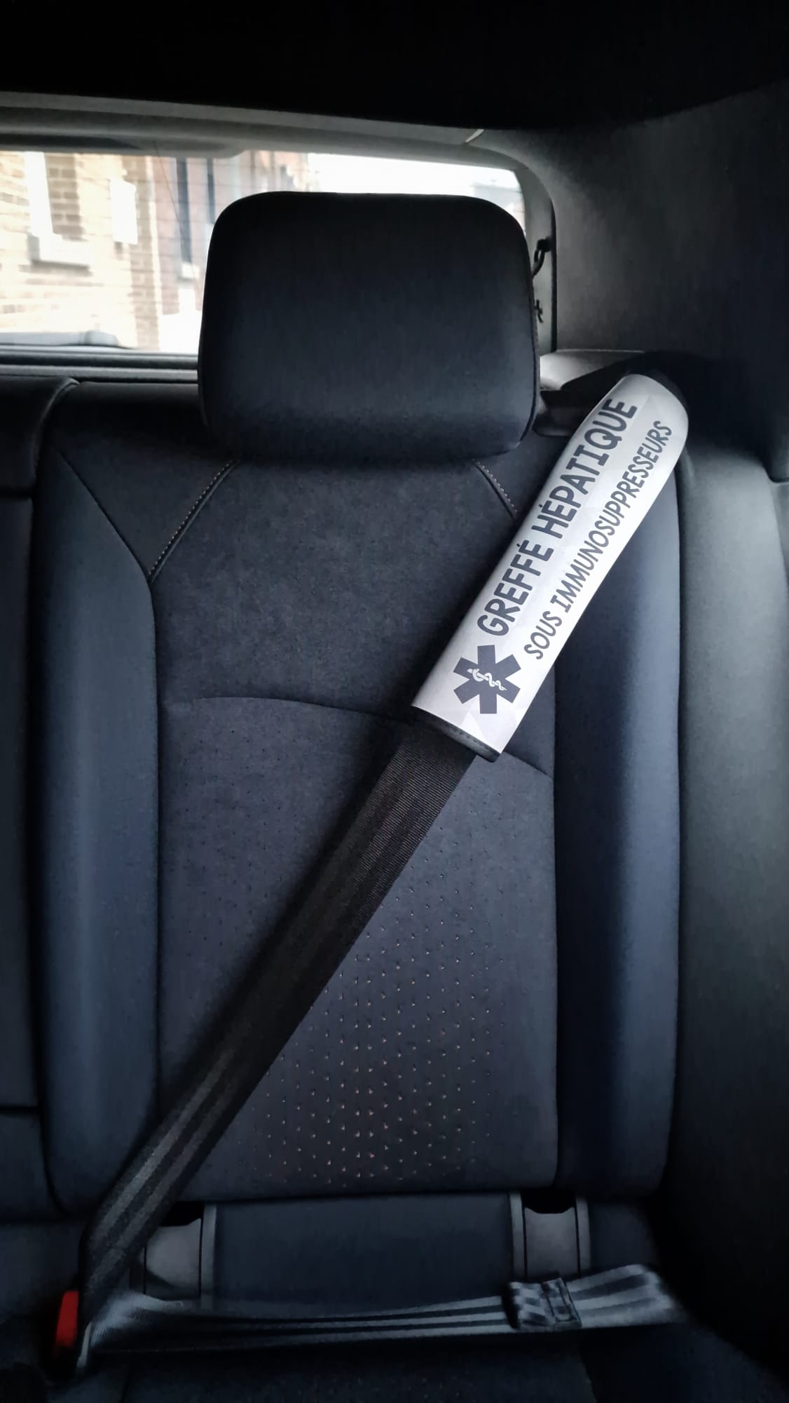 Protège ceinture de sécurité « Greffé. Sous immunosuppresseurs »