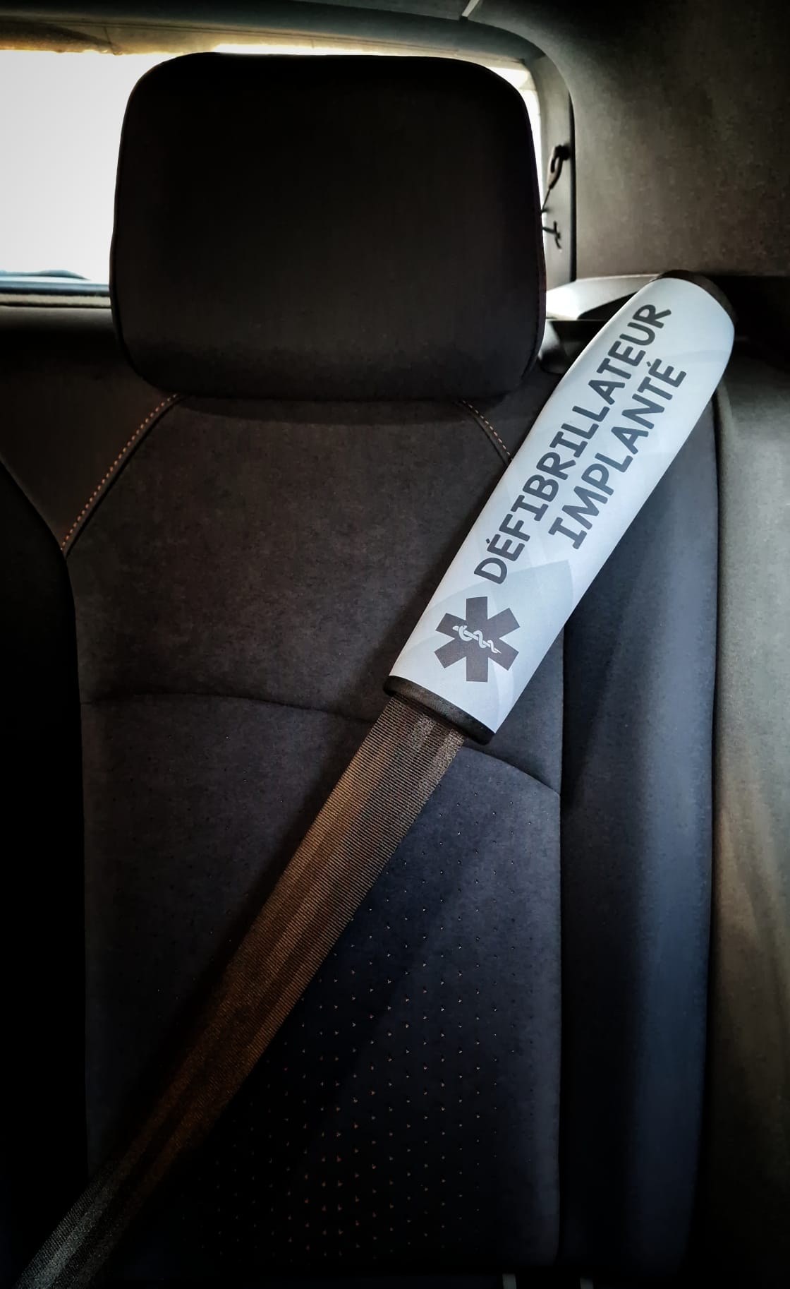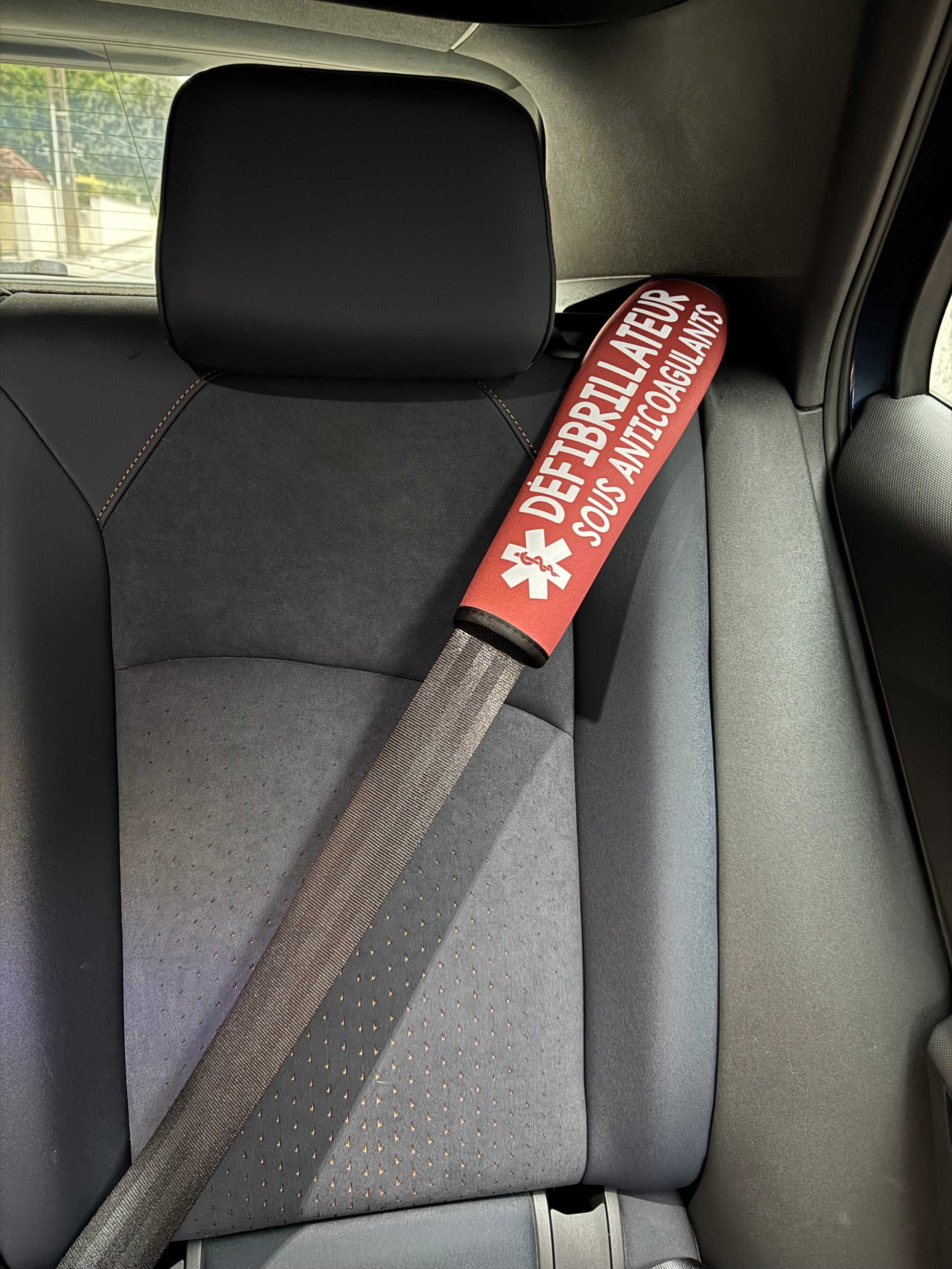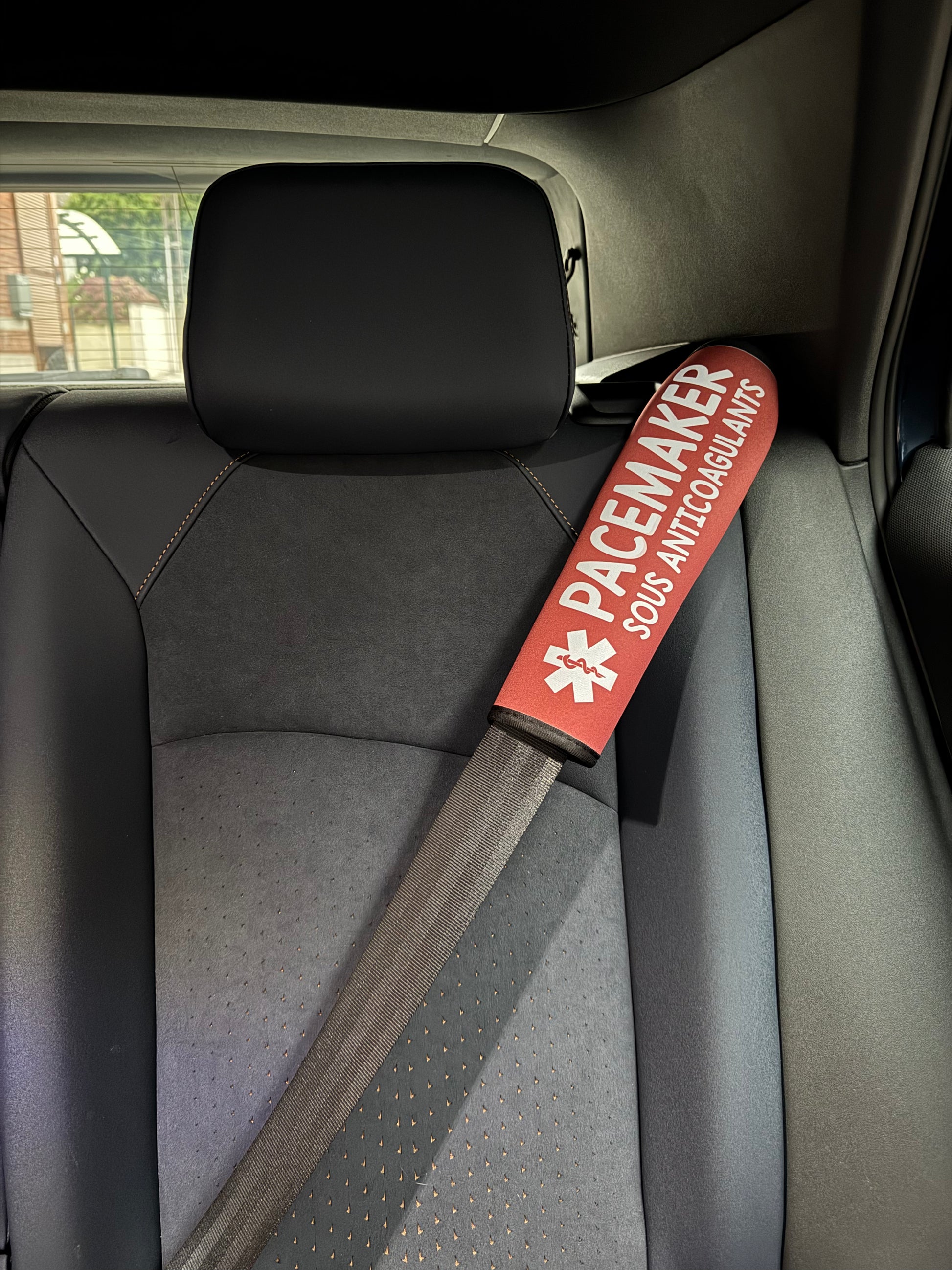 Protège-ceinture de sécurité « PACEMAKER » ou « DÉFIBRILLATEUR » (version simple ou « sous anticoagulants »)