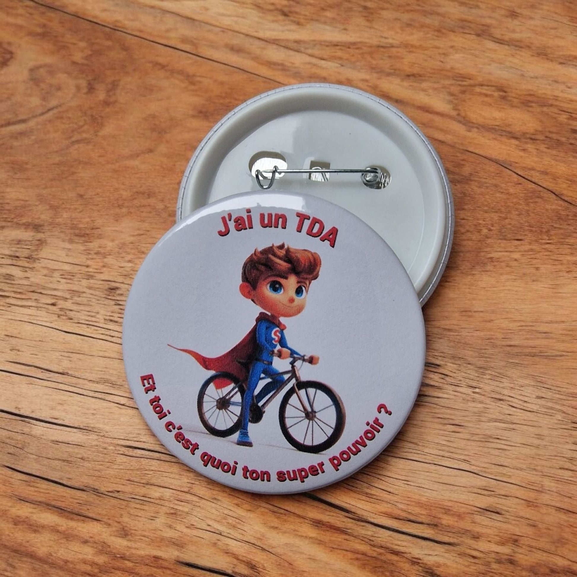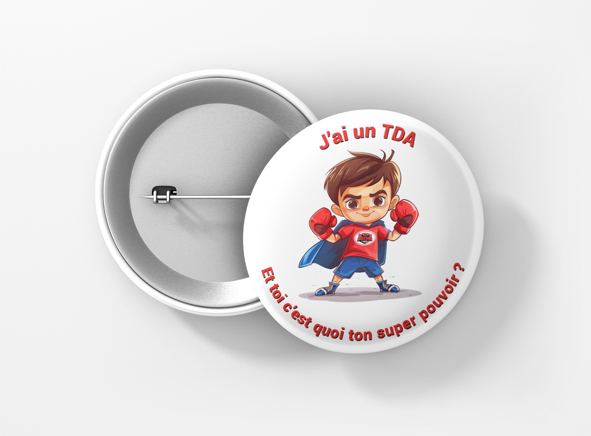 Un badge conçu pour sensibiliser et valoriser les personnes vivant avec un trouble de l’attention (TDA), en mettant en avant leurs forces uniques avec fierté et bienveillance.