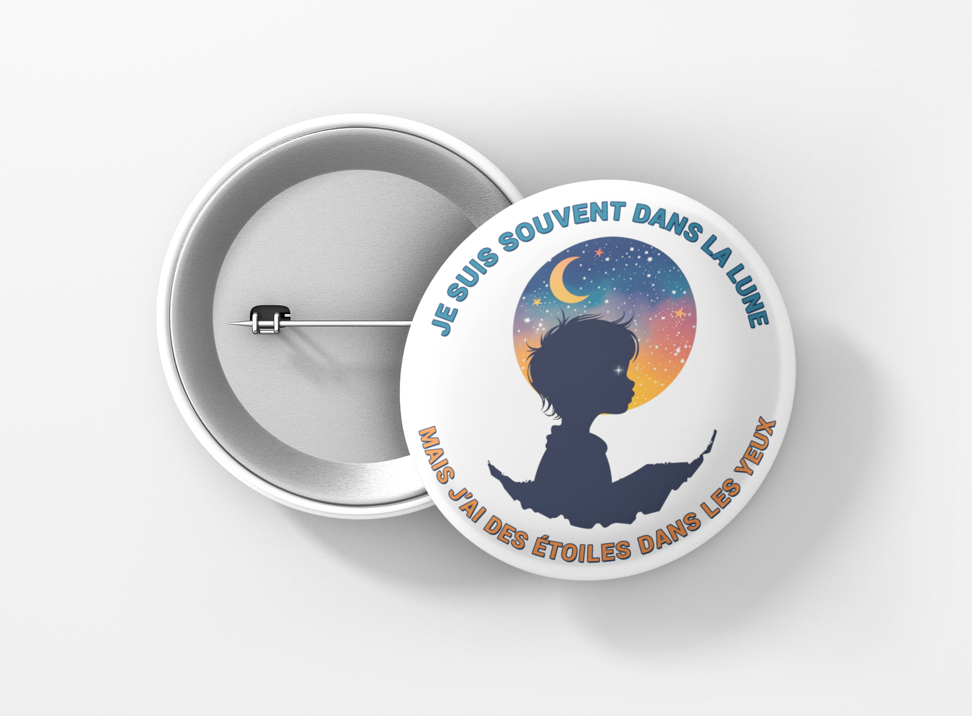 - Fixation : Épingle sécurisée, idéale pour vêtements, sacs ou autres accessoires.